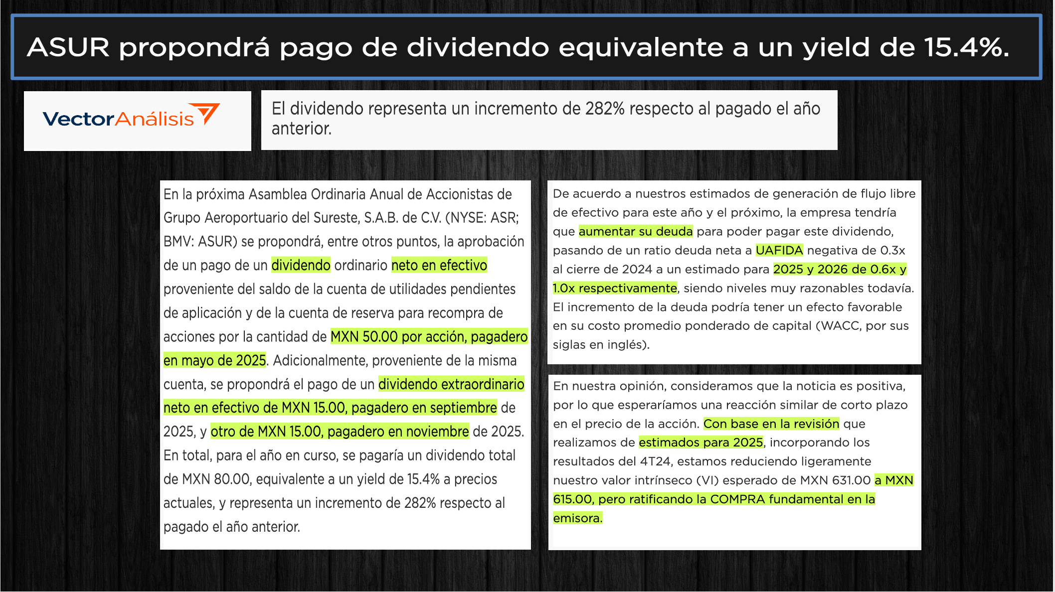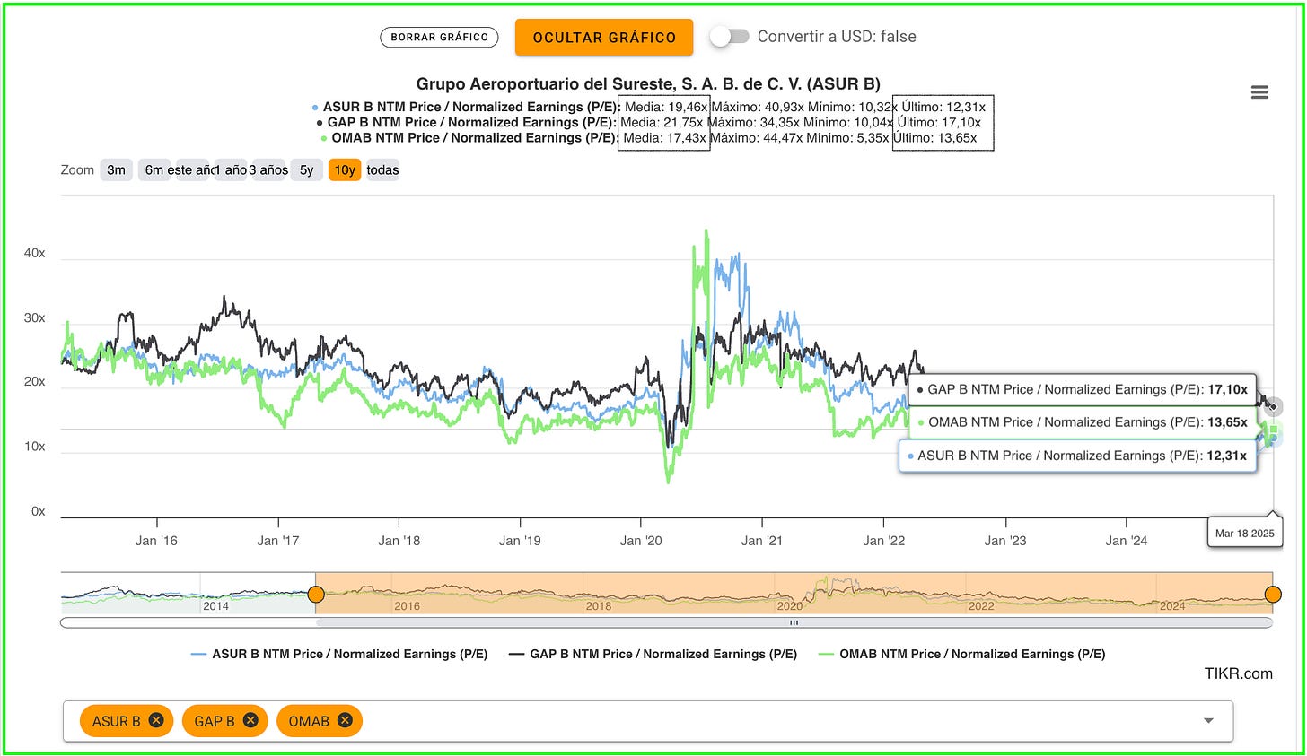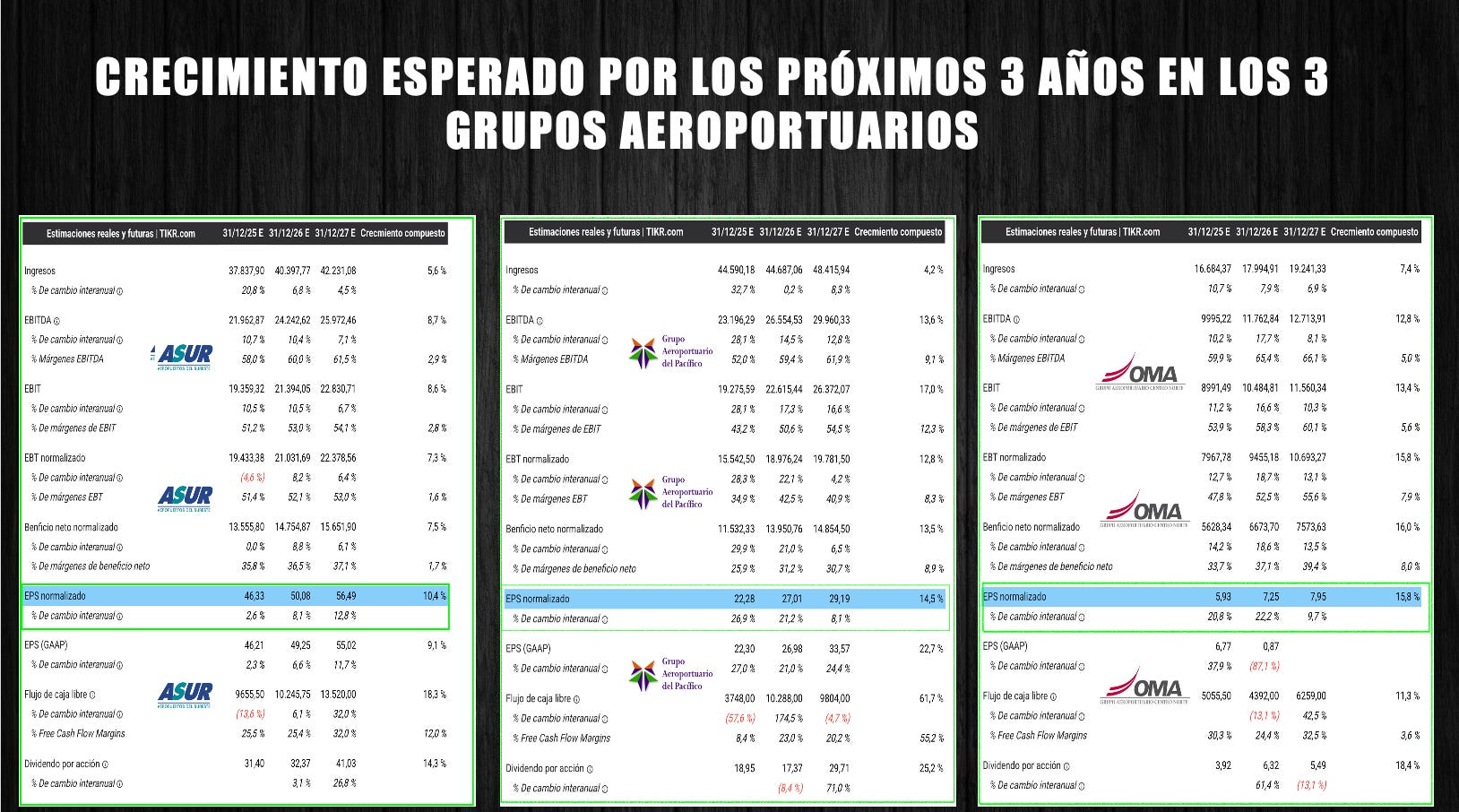Si además le sumamos la rentabilidad por dividendo para 2025 del 15% para ASUR, de 5.85% para OMAB y de 3.02% para GAPB en definitiva hay algo ahí para sacar provecho.