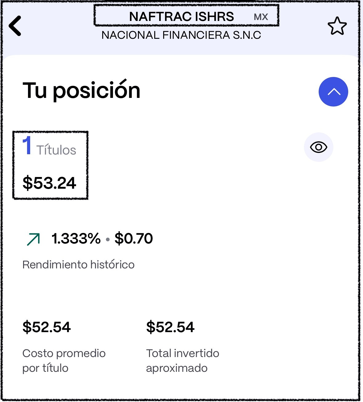 Una vez aperturada la cuenta y debidamente fondeada, solo hay que buscar el Tikr NAFTRAC, seleccionarla y comprar una acción y listo, ya estas oficialmente invertido.