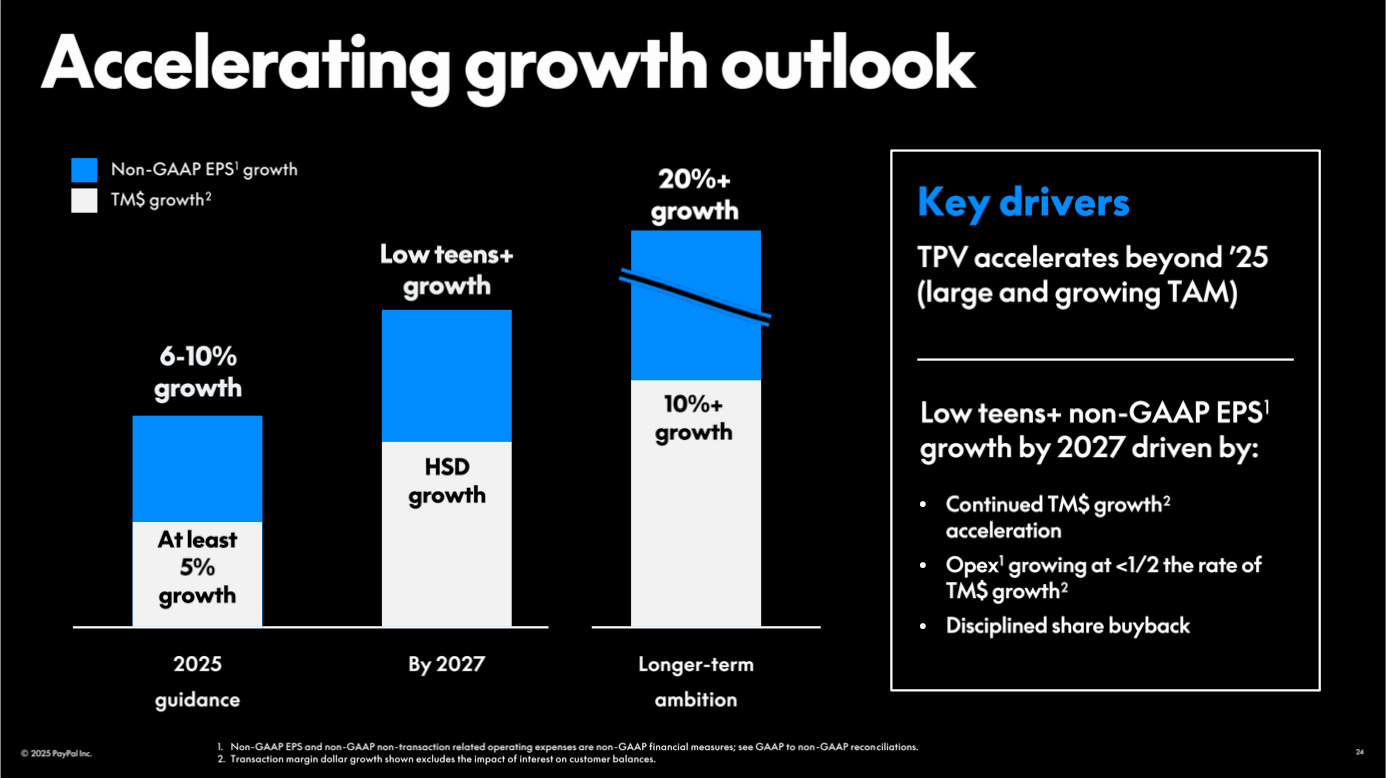 Adelantaron guía de resultados para 2025, en cuanto al EPS, crecimiento para 2025 del 6 al 10%. Entre 11 y 13% para 2027 principalmente influenciado por crecimiento continuo de los márgenes de transacciones, costos operativos creciendo menos de la mitad de lo que crecen los margenes de transacciones, así como recompras de acciones con mucha diciplina. Y finalmente como una meta muy ambiciosa crecimiento del EPS de mas del 20% para el largo plazo.